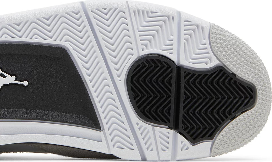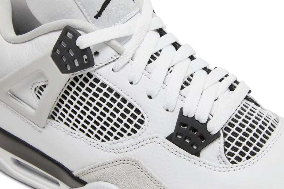 The Air Jordan 4 Retro ‘Military Black’ showcases the same color blocking and materials featured on the OG ‘Military Blue’ colorway from 1989. Smooth white leather is utilized on the upper, bolstered with a forefoot overlay in grey suede. Contrasting black accents make their way to the TPU eyelets, molded heel tab, and the Jumpman logo displayed on the woven tongue tag. Lightweight cushioning comes courtesy of a two-tone polyurethane midsole, enhanced with a visible Air-sole unit under the heel.
